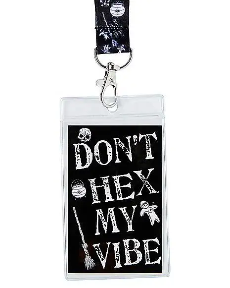 Let everyone know you’ve got a dark side when you carry your ID and keys in this Don’t Hex My Vibe lanyard. This fun black-and-white has decorations along its strap for added style.