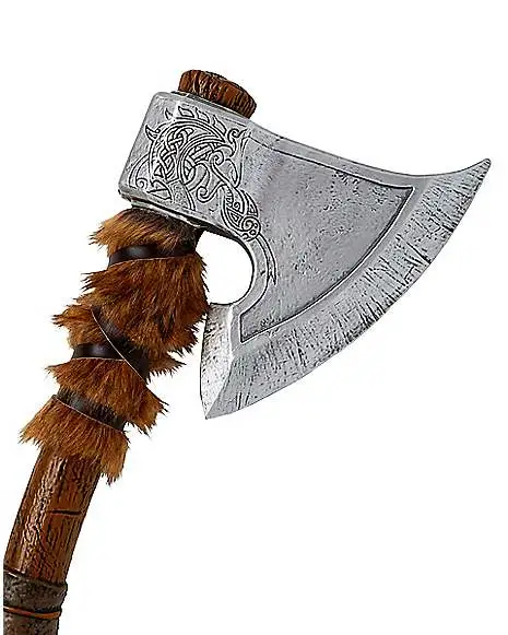 Start your next adventure with a powerful axe in your hands! This Viking Axe will have you looking just like a mighty Viking warrior in no time. Featuring faux fur and enscribed with ornate detailing, this axe will complete any Viking ensemble.