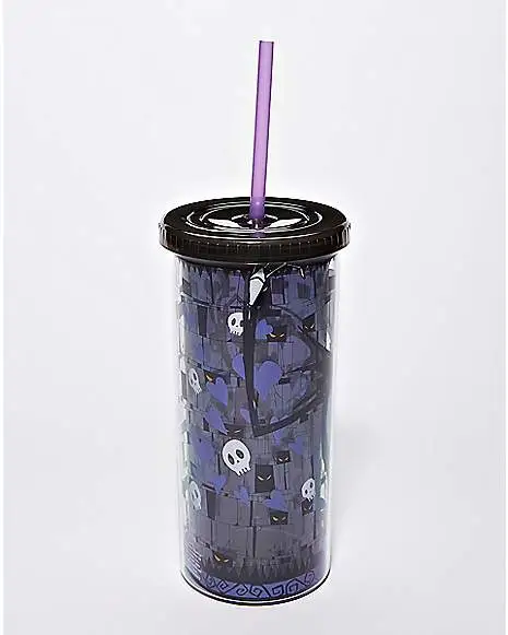 Sip on your beverage of choice on the go or while on the couch watching The Nightmare Before Christmas. This Jack Skellington cup with straw features a heart and skull design and your favorite NBC character!